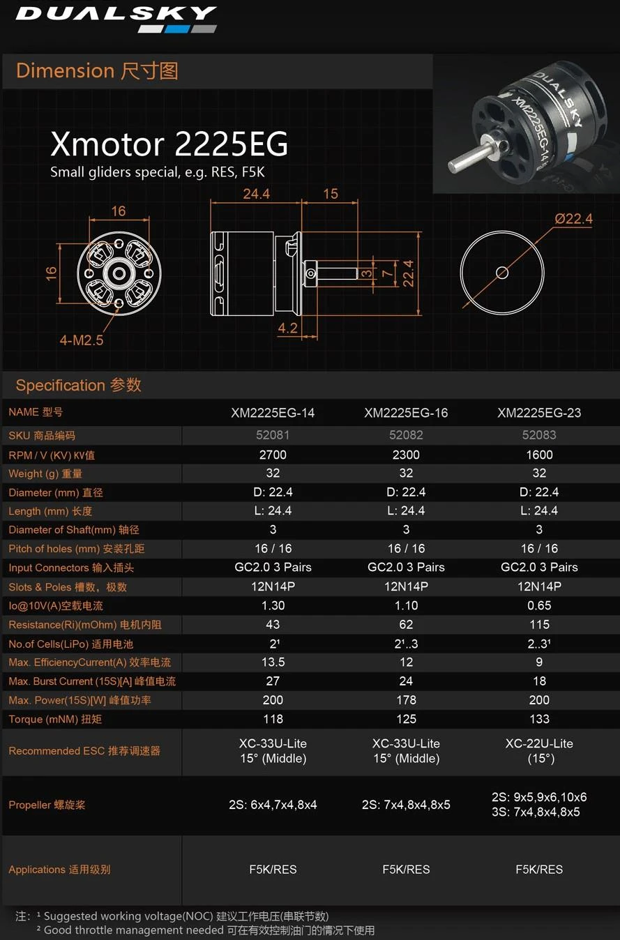 The Dualsky XM2225EG-23 is a high quality outrunner for models weighing 200 – 600g.