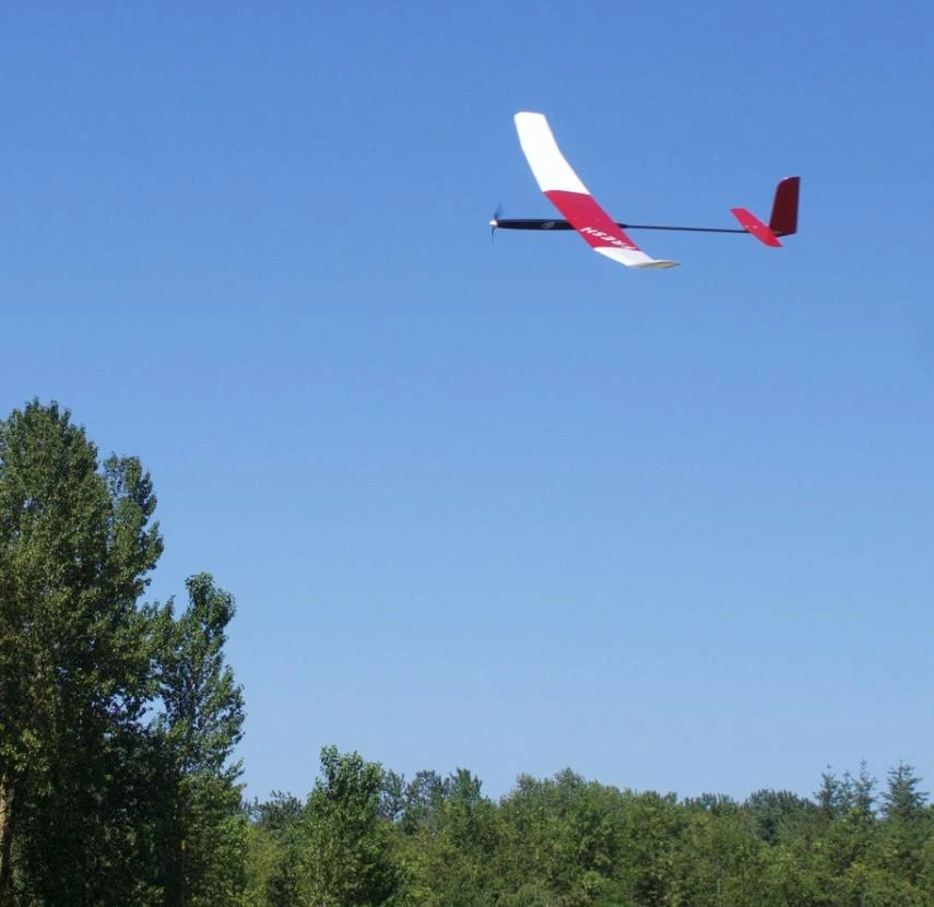 | Hacker A10-7L geared 4:1 | 3S 450mAh LiPo, 13×8 folding prop |