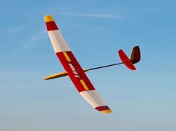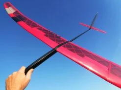 The glass Hawk 2 DLG model is supplied with a strong and brightly coloured glass layup wing, which weighs approx 60 g. The SC Hawk 2 version is supplied with a lighter Carboline spread carbon wing weighing 52 g. The SC model especially is exceptionally light, while also being strong and very rigid, allowing high launches. Still air times of 1:30 to 2 minutes can be obtained by strong launchers, and thermal performance and stability is good.